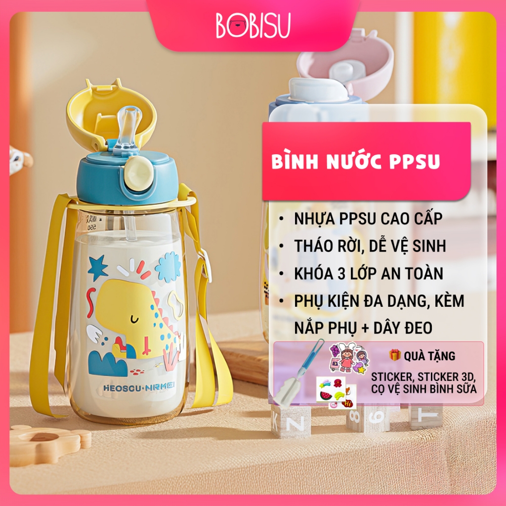Bình nước PPSU có ống hút 2 đường cong hình chữ Y, ba lớp khóa chống đổ, chống bể, trọng lượng nhẹ, vừa khít vào khoang miệng của bé khi uống nước.