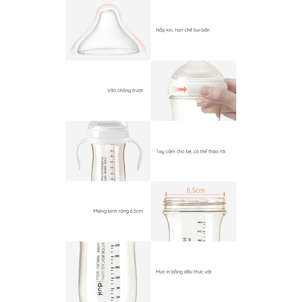 Bình sữa chống sặc KUB dung tích 240ml là lựa chọn lý tưởng cho bé từ 6 tháng tuổi trở lên. Sản phẩm được làm từ chất liệu PPSU cao cấp nhập khẩu từ Đức, đạt chuẩn an toàn FDA và LFGB, mang lại sự yên tâm tuyệt đối cho mẹ trong hành trình nuôi con bằng sữa.