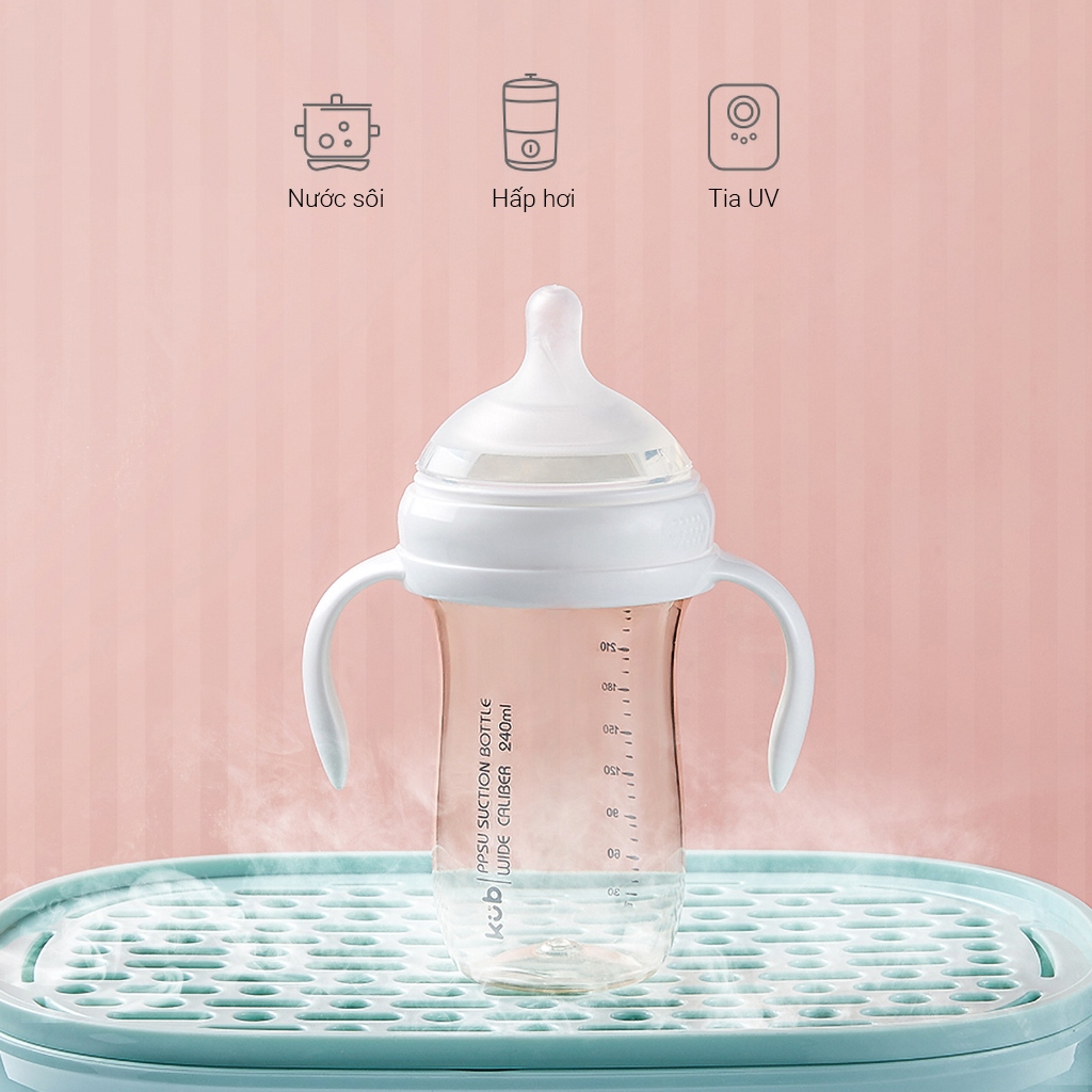 A: Có. PPSU chịu nhiệt cao, an toàn khi tiệt trùng bằng nước sôi, hấp hoặc UV.