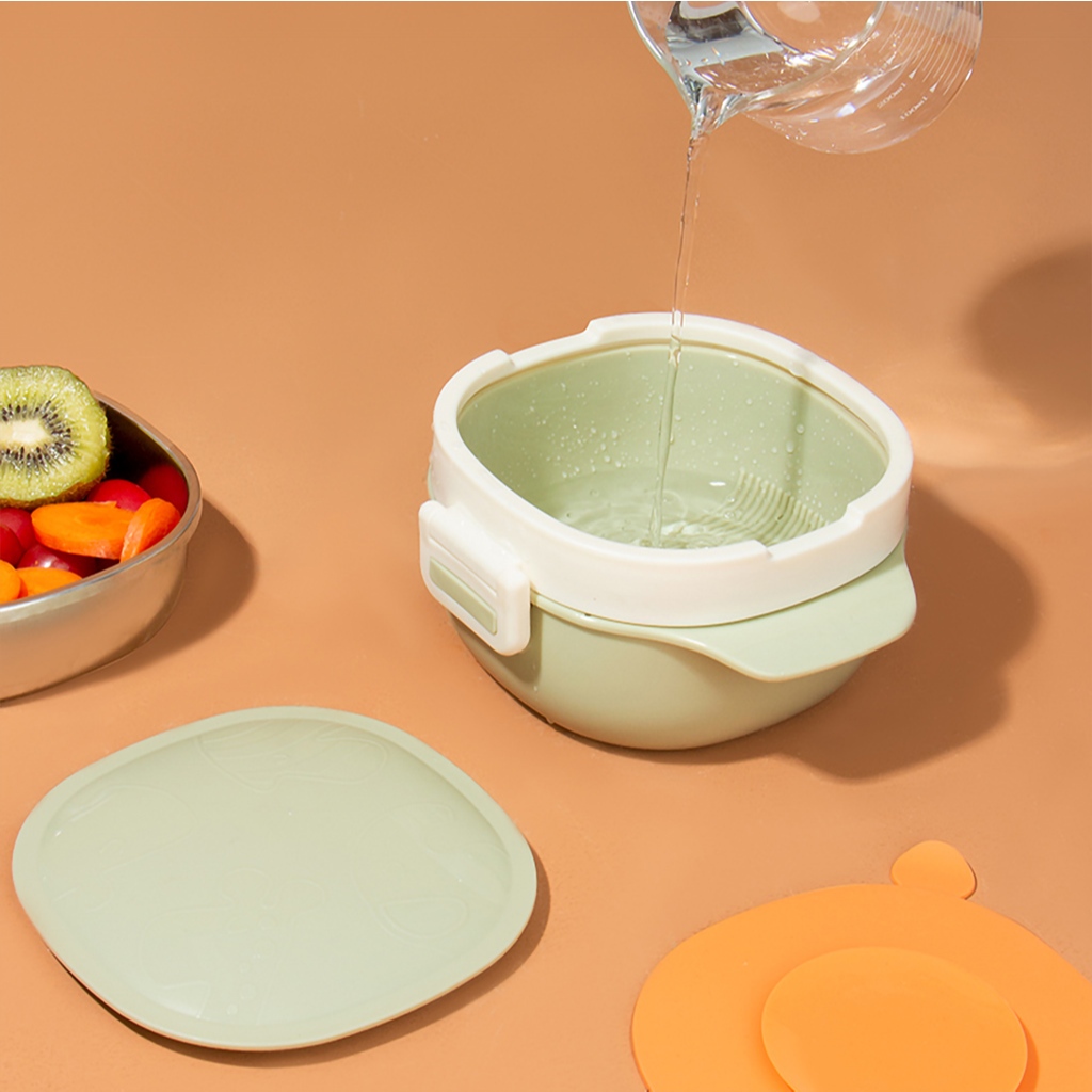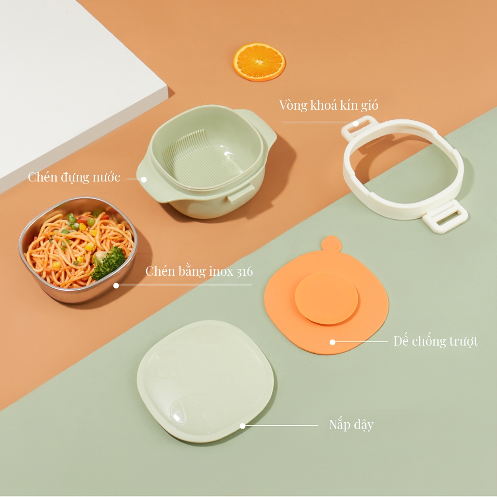 Đậy nắp, đặt bát lên đế silicon chống trượt.