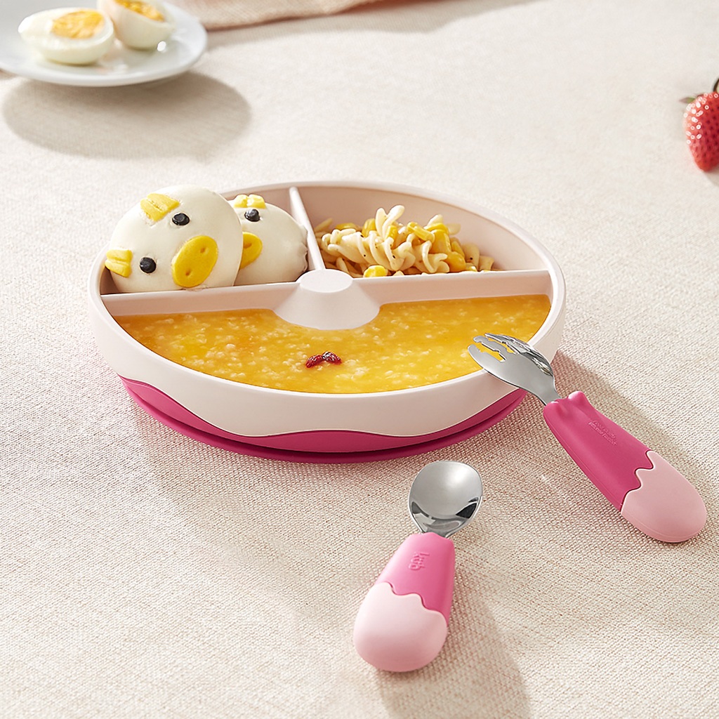 Tặng kèm muỗng nĩa inox 316 cao cấp – đầu tròn, tay cầm silicon chống trượt, hỗ trợ bé tập xúc thức ăn dễ dàng