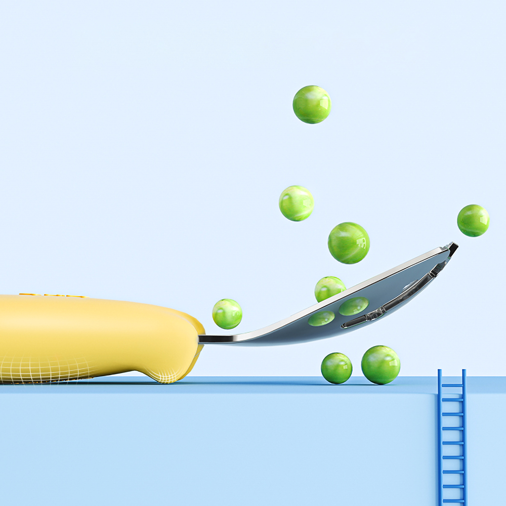 Thiết kế nâng đầu thìa dĩa, hạn chế chạm mặt bàn – giữ vệ sinh tối đa.