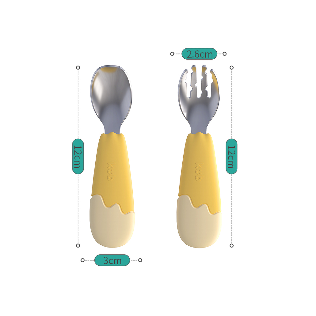 Bộ thìa dĩa ăn dặm KUB chất liệu inox 316 cao cấp là lựa chọn an toàn và tiện lợi cho bé trong giai đoạn tập ăn. Thiết kế bo tròn thông minh, tay cầm silicon mềm mại dễ cầm nắm, giúp bé làm quen với việc tự ăn một cách vui vẻ và an toàn. Bộ sản phẩm chịu nhiệt tốt, dễ vệ sinh, phù hợp cho bé từ 12 tháng tuổi trở lên.